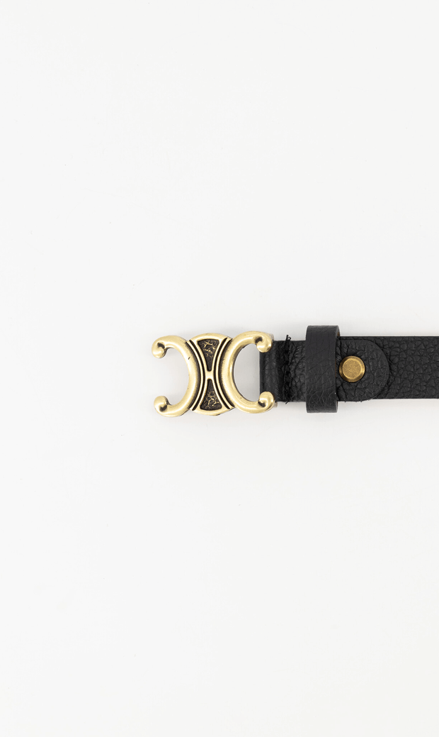 De Eline riem zwart small is gemaakt van genuine leer en is 2,5 cm breed. De riem heeft een goudkleurige gesp en is verkrijgbaar in de maten 85, 95 en 105. De riem is in te korten door middel van een schroef op de kop.