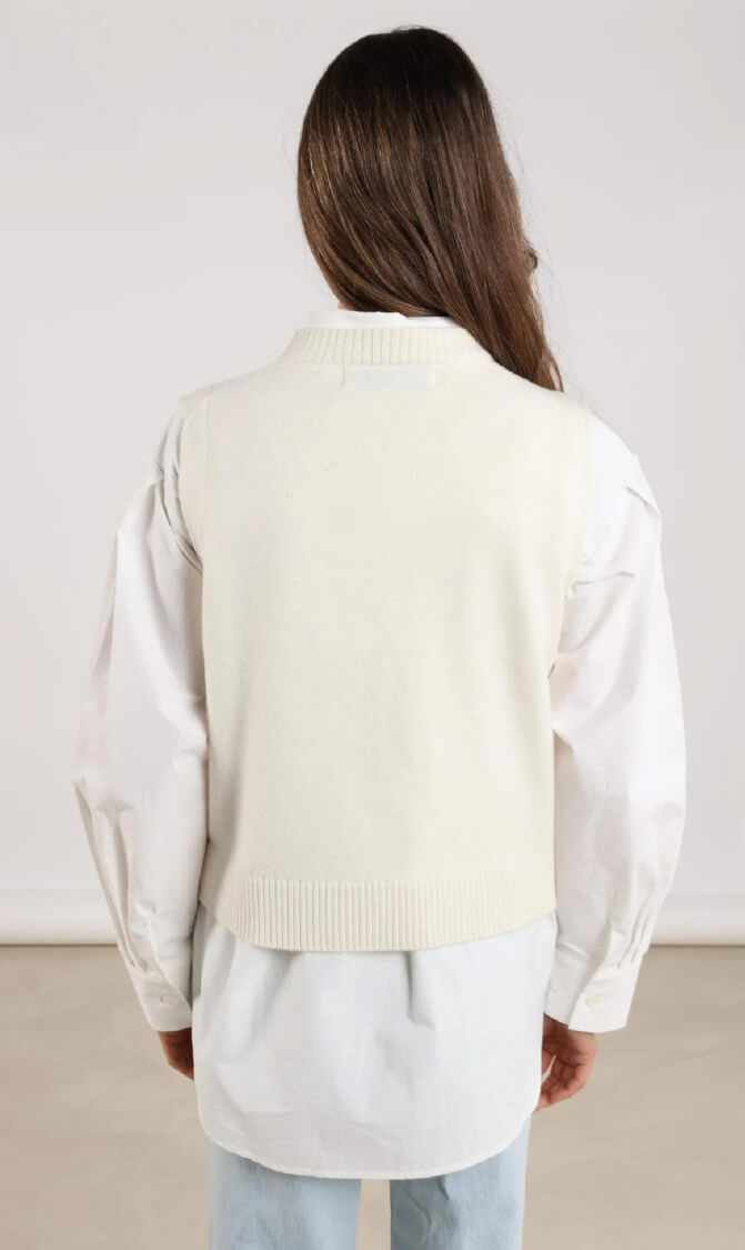 De Nukus Intarsia spencer is een tijdloze dames spencer met een verfijnde, minimalistische uitstraling. Het effen design en de ribgebreide mouwboorden geven dit item een subtiele structuur, terwijl de regular fit zonder mouwen zorgt voor een moeiteloos silhouet dat gemakkelijk te combineren is.