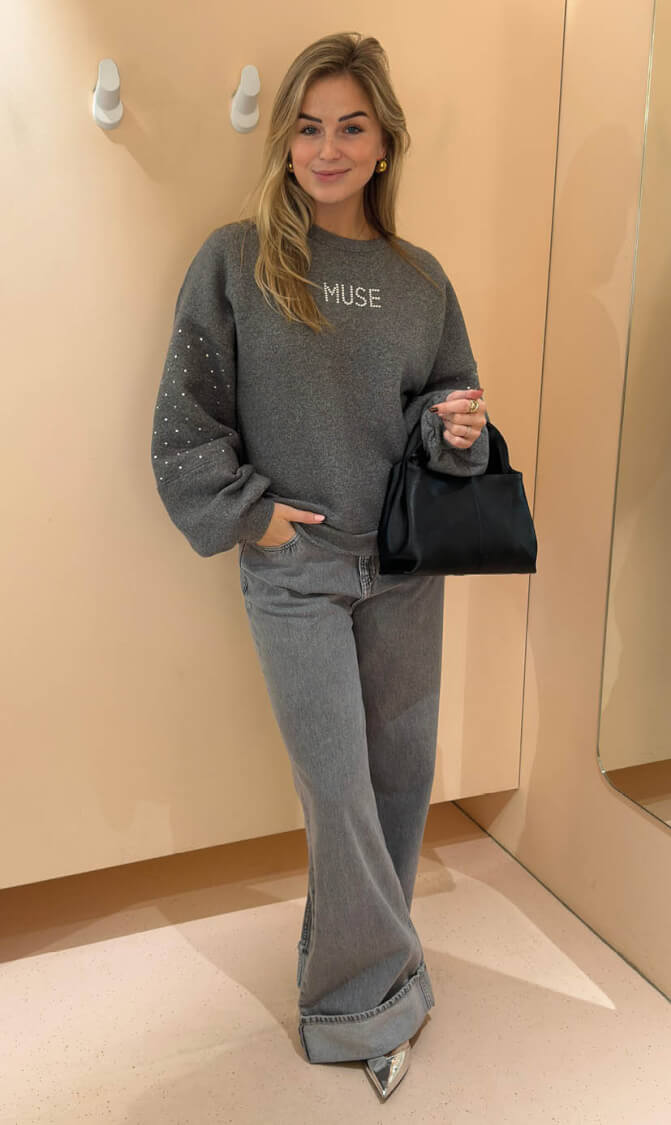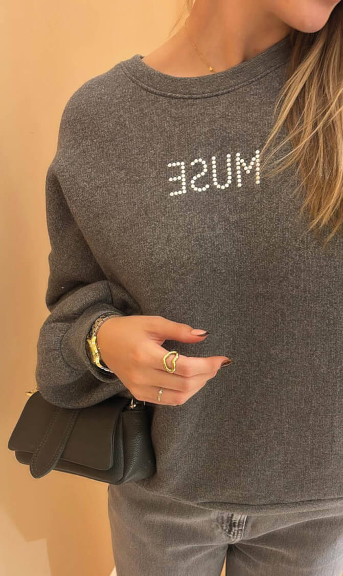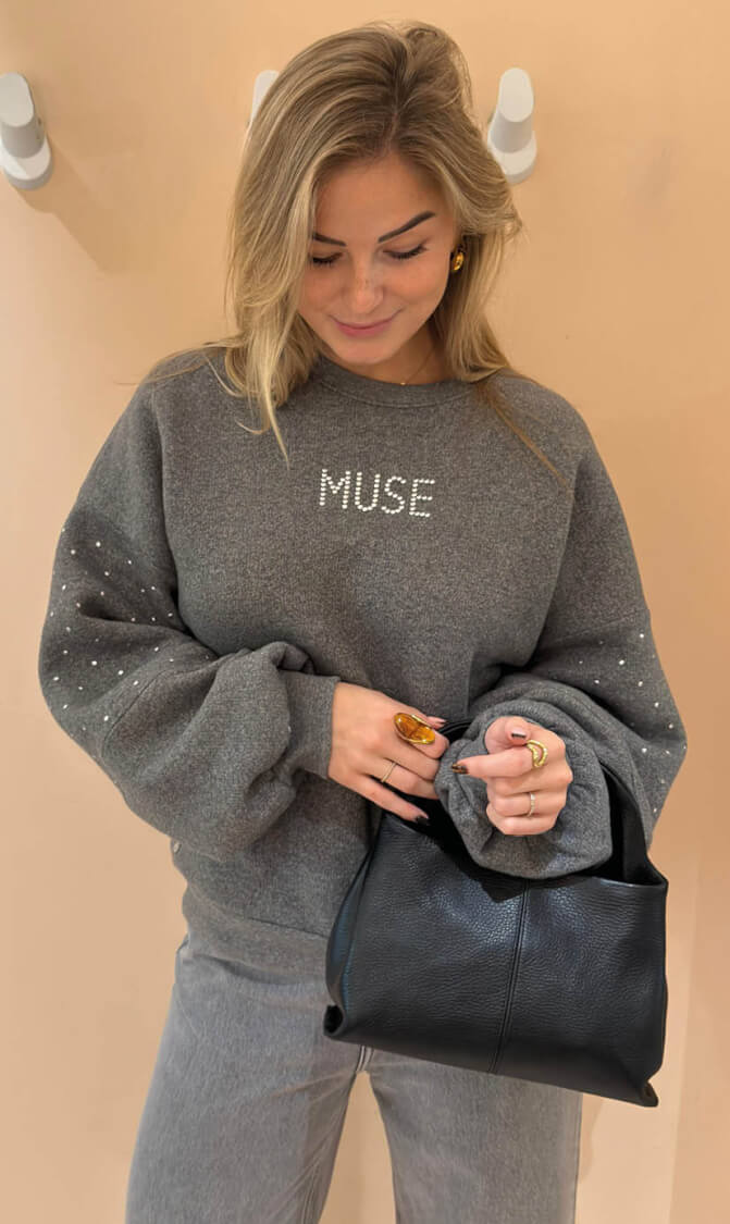 De Nukus Little Pullover in de kleur antraciet is de perfecte mix van comfort en stijl. Deze trui is gemaakt van zacht, ademend katoen dat heerlijk aanvoelt op de huid. De stoere studs op de mouwen geven de pullover een unieke, edgy uitstraling, terwijl het opvallende ‘Muse’-detail op de borst zorgt voor een speelse, trendy touch.