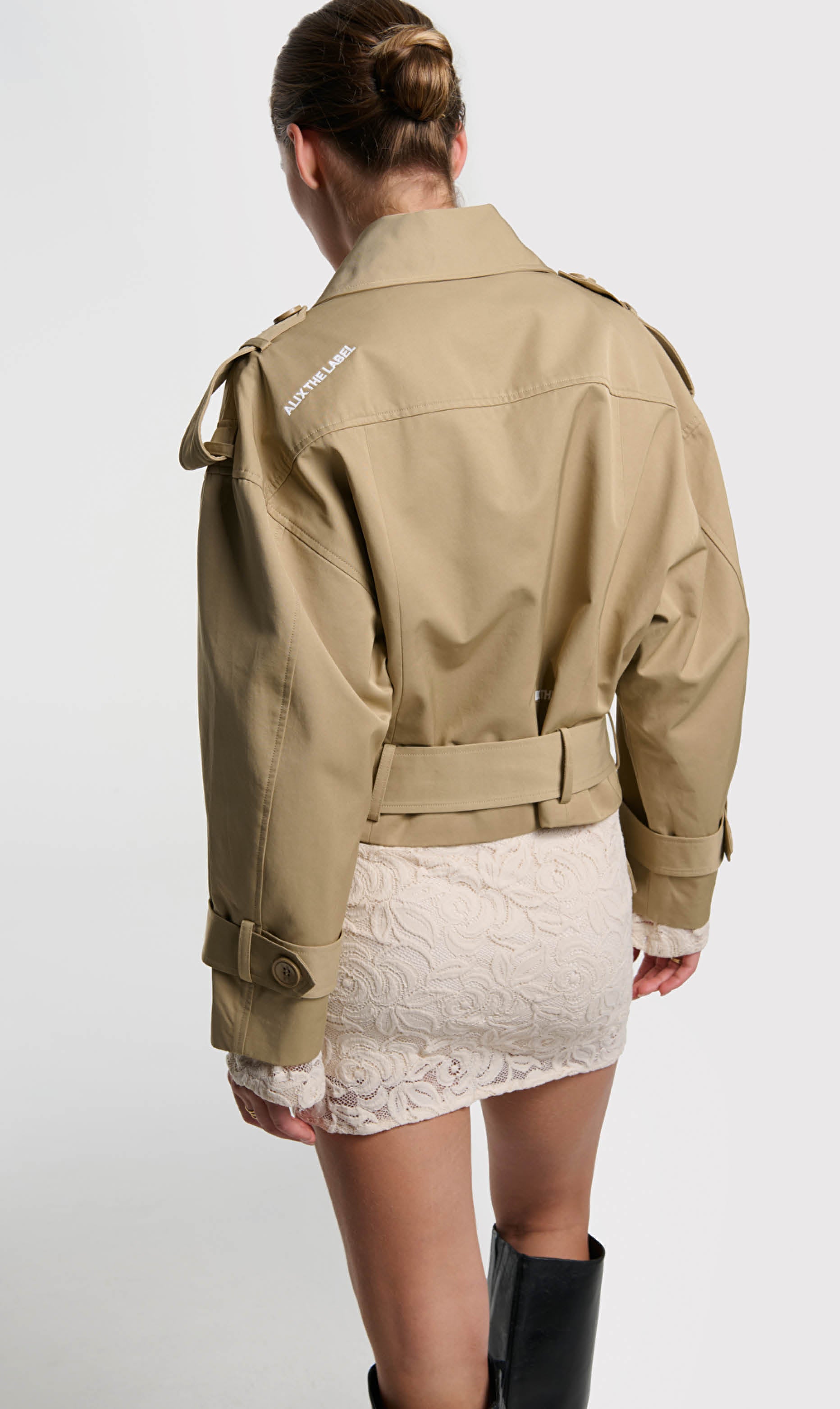 Deze korte trenchcoat van ALIX The Label geeft je outfit een stoere en moderne look. De licht cropped pasvorm en de stevige trenchstof zorgen voor een frisse, eigentijdse uitstraling.