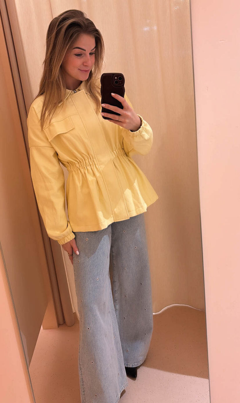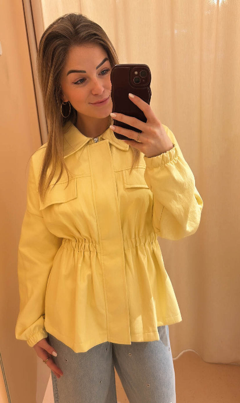 Jacket Anna geel is een mooi jasje die in de taille getailleerd is.