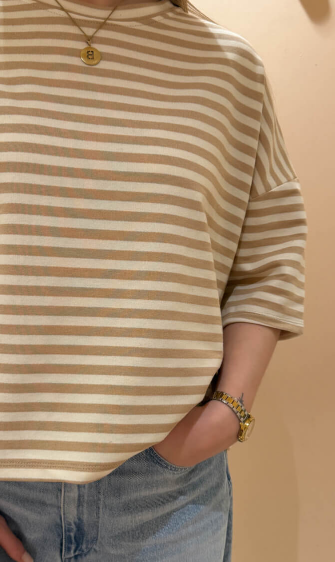 Streep top lexy korte mouw beige