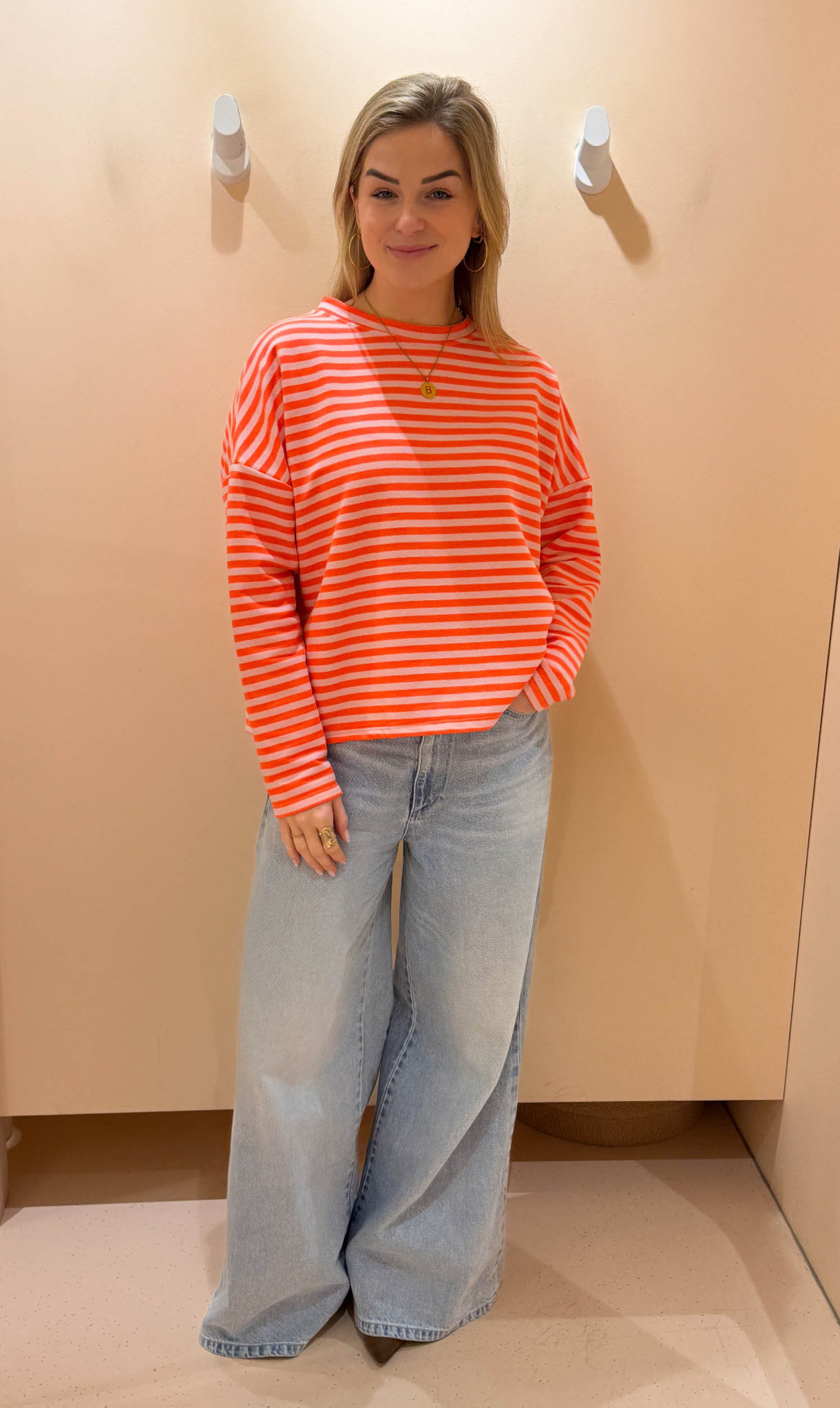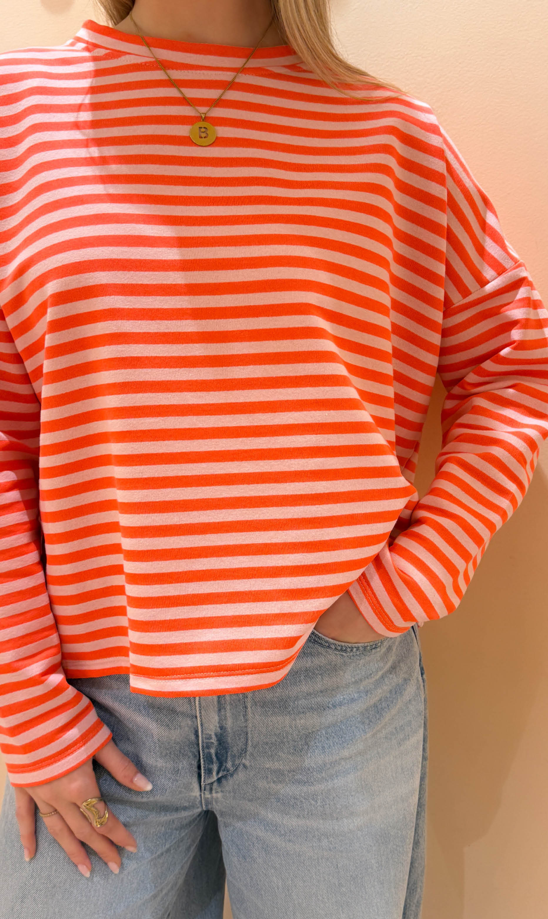 Streep top lexy lange mouw coral